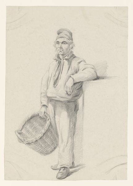 Pieter van Loon made this pencil drawing titled 'Voddenboer, staand naar rechts’ – or ‘rag man, standing to the right’ – in the early 19th century. Images of the ‘rag man’ were popular during the period. They represented some of the many members of the working class that drove the Dutch economy. The ‘rag men’ collected unwanted household items, like rags, which could then be recycled or repurposed. We can see in this image that he is carrying a large basket on his back, presumably for the rags he collected, a walking stick, and wearing clogs. This image can teach us about the importance of labor in 19th century Netherlands, as well as inform us about clothing styles and typical jobs from the period. If you want to learn more, you can read accounts from the period and other images of this type of worker. You will likely find that images of the working class were usually meant to emphasize their virtues.