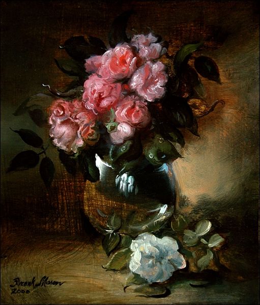 Curator: Ah, here we are in front of Nicolaes van Veerendael's "A Bouquet of Flowers in a Crystal Vase" from 1662. It resides here at the Metropolitan Museum of Art. Editor: What immediately strikes me is the intense contrast! The flowers, practically glowing against that inky, almost impenetrable black background. There's a real sense of drama. Curator: Indeed. Veerendael, working within the Dutch Golden Age, uses the flower still life genre, a popular style at the time, as a meditation on mortality and the transience of beauty. These kinds of artworks carry strong vanitas themes, reminding us about the ephemeral nature of life and pleasure. Editor: I see it now! The butterfly on the rose…a beautiful creature, a symbol for the soul’s journey to find true enlightenment. It gives me an allegorical vibe with nature taking center stage as a symbol for life and death. Does the type of flower used have special meanings as well? Curator: Absolutely. Each bloom would have carried significance. For instance, the tulips are a popular subject, representing wealth but also reckless consumerism. They quickly gained and lost popularity which eventually resulted in one of the earliest economic bubbles ever. And, given the global trade routes established during this period, the specific flowers in the painting highlight not just the artist's skill but also Dutch economic and social power. Editor: So it’s almost a visual encyclopedia of cultural values! Even the vase itself suggests clarity and luxury, an attempt to contain something essentially uncontrollable, the march of time and decay. Curator: Precisely! Furthermore, looking beyond this individual work to understand broader patterns in the history of still-life paintings, especially how female artists were often steered into this genre despite its low status compared to other artworks is paramount. Thinking of its reception by diverse audiences throughout history reveals changing attitudes toward the Dutch colonial project, wealth, and women's involvement in art. Editor: And it’s all captured through such meticulous detail. This painting doesn't just represent flowers. It presents us a symbolic language rich in meanings from economics, mortality, culture, and beauty. The way Veerendael has intertwined the themes leaves the viewer feeling thoughtful about the subject of life, loss, beauty, and our brief time within it. Curator: I find I am pondering where art will take us, always a historical lesson for us all, don't you think? Editor: Always!