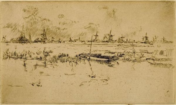 Editor: So, this is Maxime Lalanne's "Landschap met water," a pencil drawing from between 1837 and 1886, housed at the Rijksmuseum. It has this wonderfully quiet, almost melancholic feel to it. What draws your eye when you look at it? Curator: For me, this seemingly simple landscape opens a window onto complex power dynamics. Consider the late 19th century—a period of intense industrialization and urbanization. Artists like Lalanne, in their rendering of the "natural," often participated in constructing an idealized vision of rural life. Editor: So, the artist isn’t just representing a landscape, but also participating in a particular discourse? Curator: Precisely! The very act of selecting, framing, and meticulously depicting this scene pushes back against the encroachment of modernity. Ask yourself, who benefited from this romanticized view of the countryside? And whose stories were being erased in the process? Think about land ownership, class divisions, and the environmental impact of industrial growth—all subtly implicated here. Editor: I see what you mean. It's easy to get lost in the beauty of the scene without thinking about the social context. Curator: Exactly. Look at the "naturalness" closely; is it truly untouched, or is it subtly cultivated? Consider the relationship between the viewer, the artist, and the land itself. Who has access? Who is excluded? Editor: It makes me think about how landscape art can reinforce ideas about belonging and exclusion. I initially just saw a pretty drawing. Curator: And that's okay! But engaging with the socio-political dimensions of even the quietest landscape encourages us to think critically about the world around us. This is a piece of land; the water is necessary for growing crops or the mobility of raw material; therefore this becomes more than an appealing, subdued picture. Editor: Thank you for opening my eyes. I never would have seen it that way on my own. Curator: The beauty of art lies in its capacity to reflect ourselves and question our position in the world. There's always a dialogue between what we see and what's really at play.
