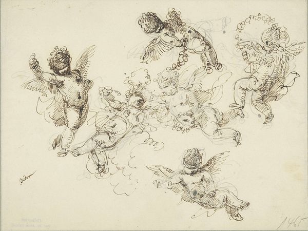 Editor: So, here we have "Rocaille Motieven," dating from between 1727 and 1775, currently residing at the Rijksmuseum. It's an ink and pen drawing by Emanuel Eichel showing these whimsical decorative patterns. It almost feels like peering into a sketchbook filled with fantastical ornaments. What strikes you most when you look at it? Curator: Oh, isn’t it delightful? Like catching glimpses of sugar plum fairies in an architect's mind. I see the Rococo spirit, light, playful, almost mocking the rigid forms of the Baroque era. Notice the asymmetry, the flowing curves, the shell-like forms--everything rebels against the straight line. Do you get a sense of where these motifs might have been applied? Editor: I'm guessing maybe furniture or interior decorations? Something fancy for the wealthy? Curator: Precisely! Think gilded mirrors, ornate fireplaces, even porcelain. These drawings were like catalogs for craftsmen. Imagine flipping through this book, pointing to a flourish and saying, "Yes, I want *that* level of extravagant whimsy on my commode!" Don't you think that’s deliciously absurd? Editor: Definitely! So, it's functional art, in a way? A template for even more art? Curator: Exactly! These patterns weren't just pretty; they were blueprints for a lifestyle—a world obsessed with beauty, luxury, and escape. It’s a visual escape hatch from reality, really. Editor: I never thought of it that way. Seeing it as functional kind of demystifies it and makes it all the more impressive! Curator: Isn’t it wonderful when art whispers its secrets? Now I feel like ordering a ridiculously ornamented cake!