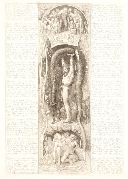 Albert-Ernest Carrier-Belleuse created this frontispiece design with graphite and white chalk on paper. The initial impression is one of classical balance, yet a closer look reveals subtle tensions in its composition. The drawing features a symmetrical arrangement around a central vertical axis, yet notice how the figures flanking the central panel introduce dynamic asymmetry. The monochromatic palette emphasizes form and structure. The architectonic frame, complete with classical motifs, encloses a panel with elegant lettering, alluding to the book’s content. The male figure acting as Atlas supporting the circle above seems to strain. Here, Carrier-Belleuse employs a semiotic system. The classical elements – the figures, the architectural frame, the allegorical motifs – are signs pointing to a larger cultural discourse of academic art and its values. Yet, the artist destabilizes any fixed meaning through dynamic composition. This challenges the viewer to engage actively with the artwork. The interplay between classical form and dynamic composition embodies not just an aesthetic choice, but also a cultural dialogue.