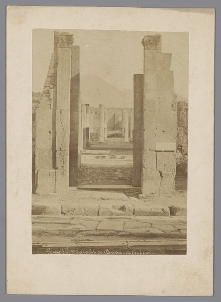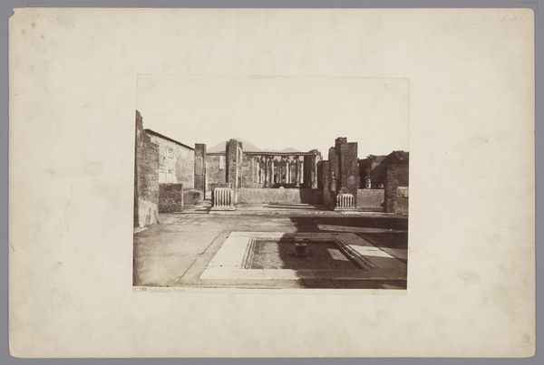 Giorgio Sommer created this albumen print of the Restanten van het Casa di Pansa te Pompeï in Italy, sometime between 1860 and 1890. Sommer was a German photographer who worked primarily in Italy, a popular destination at the time for wealthy Europeans on the Grand Tour. This photograph captures the haunting beauty of the ruins of Pompeii, a city frozen in time by the eruption of Mount Vesuvius in 79 AD. While seemingly objective, Sommer's photographs participated in a broader European fascination with antiquity and the picturesque. The ruins themselves became symbols of lost civilizations and served as poignant reminders of the transience of human endeavors. They also reflect the beginnings of archeology and the cultural appropriation of ancient cultures. The sepia tones and the stark contrast between light and shadow evoke a sense of melancholy and reflection. The photograph invites us to contemplate the lives of those who once inhabited this space and the forces of nature that ultimately consumed it. Ultimately, Sommer's photograph acts as a mirror reflecting the viewer's own place in the grand sweep of history.