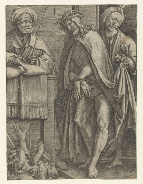 Giuseppe Scolari created this print, “Christus aan het volk getoond,” where Christ, crowned with thorns, is presented to the people. This scene, laden with symbols of power and suffering, speaks to the complex interplay between divine and earthly authority. Consider the crown of thorns: initially a symbol of mockery, it becomes a potent emblem of sacrifice and spiritual kingship. The gesture of presentation—pointing toward Christ—echoes in countless depictions of authority figures throughout art history. We see this in ancient Roman imagery and even in contemporary political art. What is fascinating is that, whether it's a Caesar or a religious figure, the underlying psychological effect is the same: a deliberate attempt to sway public opinion through carefully constructed visual cues. These symbols create a powerful, almost visceral, connection to the viewer, tapping into deep-seated emotions of pity, awe, and judgment. The cyclical nature of these symbols—their resurfacing and reinvention across time—reveals the enduring human quest to understand power, suffering, and the divine.