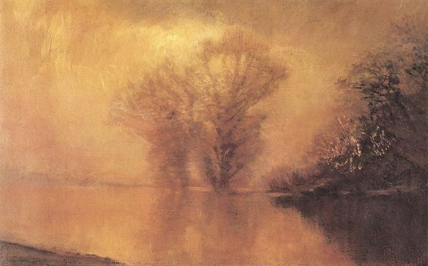 Isaac Levitan created this small, oil-on-canvas painting, Twilight. Moon., where a full moon hangs over a tranquil river landscape. The moon, a symbol of cyclical change and the passage of time, dominates the composition. This celestial body has been a constant motif throughout art history. Think of its presence in ancient mythologies, where lunar deities embody feminine power and intuition. We can trace this motif through medieval art, where the moon often accompanies images of the Virgin Mary, symbolizing purity and enlightenment. Even in modern art, the moon continues to evoke a sense of mystery and introspection. The image affects our subconscious. Its soft glow and serene reflection in the water evoke a sense of melancholy. This echoes a deep-seated human fascination with the night, a time associated with dreams, fears, and the unknown. The non-linear progression of this symbol has resurfaced, evolved, and taken on new meanings in different historical contexts.