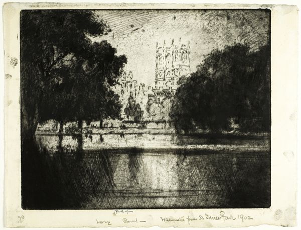 Joseph Pennell made this etching, *Lincoln’s Inn Fields*, in 1903, and, wow, it’s an image built from such a beautiful and delicate network of lines. The whole thing feels almost like a memory, hazy and soft, as if Pennell was more interested in atmosphere than detail. I love the way he’s used the etching technique to create a sense of depth, drawing us back into the space of the fields. The textures he’s achieved are incredible - look at the way the light filters through the trees, it's almost like you can feel the cool air. And then there’s the building in the background, rendered with such precision, yet still somehow ethereal. Check out the scratchy mark-making in the bottom left corner; it reminds me of Cy Twombly’s nervous energy, or maybe even some of Whistler’s more tonal studies. It’s really just a reminder that art isn’t about capturing reality, but about creating a feeling, a mood, an experience.
