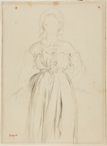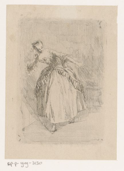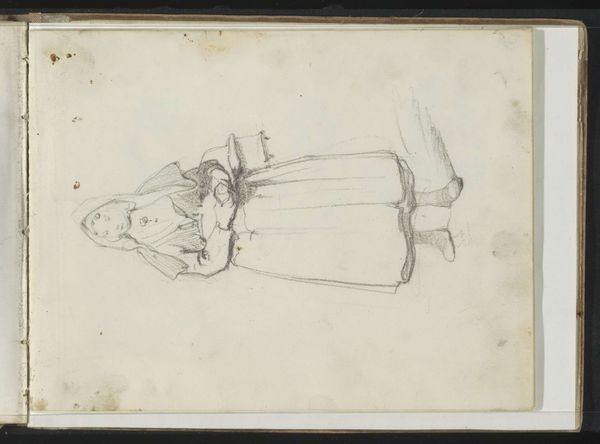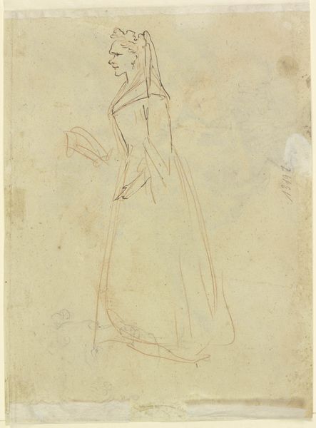 Editor: This drawing, "Figuurstudie van een vrouw op de rug gezien," created in 1806 by Wouter Johannes van Troostwijk, offers an intimate glimpse into the artist’s process. It is currently housed in the Rijksmuseum. The simplicity of the pencil on paper gives it an ephemeral, almost dreamlike quality. What can you tell me about it? Curator: It’s fascinating how a seemingly simple sketch can reveal so much about the socio-political context of its time. Consider the artist's decision to depict the woman from behind. What message does this convey to the public in terms of the representation and role of women at the turn of the 19th century? Editor: It makes me think about privacy and access… Was this common, or were portraits generally commissioned and posed? Curator: Exactly. Portraiture at this time was largely dictated by patronage. This sketch could be interpreted as a subtle form of social commentary. By choosing this subject and viewpoint, Troostwijk is making choices about whose stories are worth telling, and how they are told. Does the Romantic style influence that choice? Editor: Definitely. Romanticism focused on individual emotion and experience, perhaps giving validity to more personal, less public, images. I hadn’t thought of it that way before. Curator: It’s also interesting to note the location. Its place within the Rijksmuseum connects to broader institutional forces which shape which art is deemed valuable to preserve. Ultimately affecting how we view both the artist and his sitter's place in history. Editor: This makes me rethink what seems to be simply an unassuming figure study; I now see many different levels of societal contexts. Curator: Precisely, understanding the art historical context enhances our comprehension and appreciation.