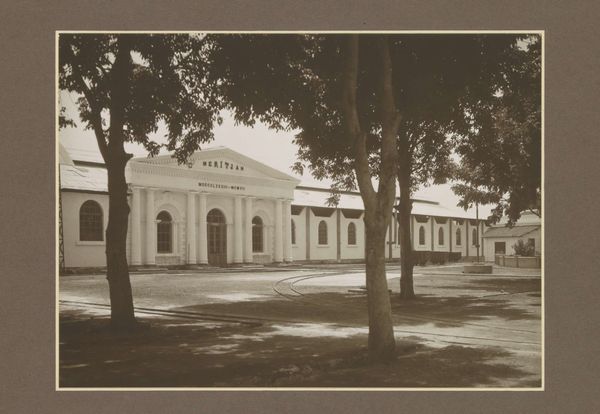 Editor: We're looking at a black and white photograph entitled "Gebouw van Rathkamp & Co.", dating from 1914-1919. The architecture is so interesting. I love how the artist plays with shadow and light. What I wonder is, how should we even begin to interpret this building as art? Curator: It whispers tales of Dutch colonialism, doesn't it? Those grand verandahs, that imposing structure, softened, almost obscured by lush tropical trees – it’s a power dynamic made visible, frozen in time. I imagine the artist carefully choosing this angle, emphasizing the weight of "Rathkamp & Co." alongside the vibrancy of the landscape. Do you see it too? Editor: Yes, I see it. But it also feels… nostalgic? Or am I completely off base? Curator: Nostalgia’s a powerful lens, and perfectly valid. Perhaps the artist, whoever they were, felt a pang of something akin to regret or longing. Think about what was lost and gained in that era, the uncomfortable juxtapositions of progress and oppression. Does the anonymity of the artist play into that feeling for you at all? Editor: It adds another layer for sure, knowing there isn’t a specific author to question. The photographer, their perspective remains unknown to us. Thanks to you I am now feeling those contradictions much more acutely now than when I started. Curator: And I think that's the beauty of it all. A simple photograph sparking a multitude of perspectives! Every little thing – that dappled light on the building, the bicycle casually leaning against the wall – contributes to a dialogue that spans continents and generations.