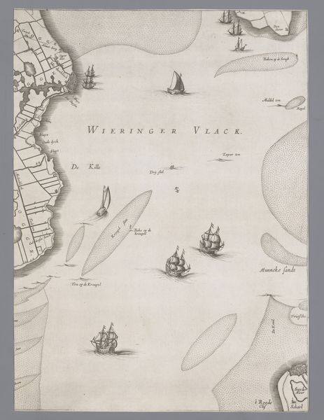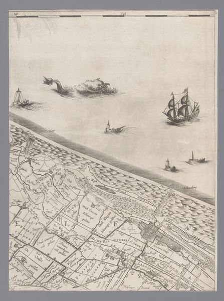 Curator: This engraving, titled "Kaart van het Graafschap Holland en Utrecht," was created in 1639 by Jacob Aertsz. Colom. Editor: My first thought is of commerce and exploration. The rendering has such precision, even romance, but its formality almost negates a purely emotional connection. Curator: Indeed. These maps weren't merely aesthetic objects; they were vital tools for trade, navigation, and asserting territorial control in the burgeoning Dutch Golden Age. We see the detailed rendering of the land, divided plots, and the waterways with its vessels. This symbolized a nation building its empire. Editor: The composition draws the eye along those delicate, etched lines. The contrast between the intricate details of the land and the openness of the water, punctuated by the ships, speaks of contained space opening out towards larger potentials. The linear abstraction almost preempts modern cartography. Curator: Precisely. Notice how the cartographer delineates political boundaries through sharp, clear lines. This reveals a desire to categorize and contain the known world. Cartography was tied to state power and even the early notions of creating modern-day concepts of nationhood. Editor: Also, note how each ship has unique rigging and hull design, an expression of individual artisanship amid the overall exactitude. The artist shows the personality and complexity inherent in these objects while subsuming them into the broader scope. There’s something quite wonderful in that tension. Curator: These details highlight the maritime prowess the Dutch held, key to economic and cultural exchanges worldwide. Moreover, the map is oriented eastward, prioritizing trade routes towards the East Indies and mirroring Holland’s colonial ambitions. Editor: Looking closely at those geometries, the implied narratives and subtle design details, this really encapsulates a precise yet poetic impression of an important area. Curator: Understanding its context unlocks how early modern cartography reflects national identity, overseas ambitions, and a changing world being constructed by Holland. Editor: A fascinating fusion of precision and implicit social ambition – seeing it with your insights, the aesthetic takes on deeper resonances.