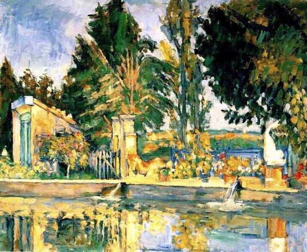 Curator: Berthe Morisot’s "The Seine at Bougival," created in 1884, offers a glimpse into the leisurely pastimes of the French bourgeoisie. Editor: It feels so dreamlike! That water dominates everything, swallowing up the buildings and figures with these shimmering strokes of oil paint. The texture itself is almost a character. Curator: Absolutely. Morisot, part of the Parisian avant-garde, chose the then-suburban locale of Bougival as the site for this piece of en plein air painting. One can sense an emphasis on capturing the fleeting moment of light and atmosphere...a reflection, if you will, on the modern social life. Editor: But beyond the societal reading, there’s the tangible labor involved in creating those brushstrokes. The quick, broken strokes, they hint at a working-class efficiency adopted for high art. Think about the sourcing of the pigments themselves, their industrial production allowing for artists to take their craft outdoors with ease. Curator: Interesting. I am much more drawn to how Morisot navigated her position as a woman Impressionist. Consider the critical establishment that often marginalized women's art…She had to assert her presence within very patriarchal structures of power. The choice of this setting - Bougival – could be a way to portray modern leisure, as allowed to her class. Editor: Well, her method certainly aligns with contemporary Impressionists, and her individual handling is so unique. The haziness, the almost unfinished quality... you feel like you’re right there, standing by the water’s edge. And that the act of capturing it was urgent and necessarily imperfect. Curator: The "imperfect" nature of her work does speak to a kind of authentic experience, defying the strict Salon conventions, wouldn’t you agree? It opened pathways for future generations. Editor: Agreed. I keep thinking about the materiality though and this connection between manufacture, nature and painting itself. From canvas production to her rapid paint application – everything contributes to an immediacy that echoes both industrial production and organic change. Curator: What a fruitful way to view "The Seine at Bougival". I appreciate you pointing me to the role that material production may have on defining and viewing such an important painting in Impressionism's rich and complicated social story. Editor: And I am grateful for a broader sense of this painter's legacy!