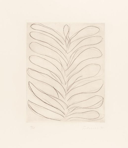 Curator: Let’s turn our attention to “Plantstudie,” a 1928 photograph by Karl Blossfeldt. Notice how he isolates this single plant against a stark background. Editor: The sheer drama of it! It's like a botanical cathedral reaching for the light, or some medieval weapon of thorns, maybe? Curator: Precisely. Blossfeldt’s meticulous, close-up photographic style really accentuates the geometric patterns found within natural forms. This work reveals structures usually unseen with the naked eye, emphasizing symmetry and repetition. Editor: You can’t help but think of architectural blueprints. It’s like he’s showing us nature’s construction plans, and, I don't know, some hidden language—a sort of silent scream or sigh held by this solitary flora specimen. Curator: Absolutely. Think about the broader context: modernism's focus on structure, function, and objective representation. Blossfeldt presents plant life almost clinically, drawing a bridge between science and art. Editor: Yet there is also this undeniable, organic power to it. This spiky vulnerability speaks to this yearning, a wish to survive—isn’t it like a reminder of nature’s strange beauty? The severe forms create an unexpected tenderness and a feeling that it is reaching to grab the sunrays! Curator: Agreed. While stripped of its colour and context, we get pure form and design through this black-and-white rendering, creating an iconic emblem, perhaps reflecting early twentieth-century desires to dissect the complexities of life into minimal, functional parts. Editor: A dissection that ironically infuses even greater mystery. Gazing, one discovers that it speaks not only about structures but about something profoundly emotional: struggle, and endurance—making art out of existence. Curator: Beautifully said. It underscores the power of formalism to extract universal beauty. Editor: Making this humble leaf, after all, a hero of art.