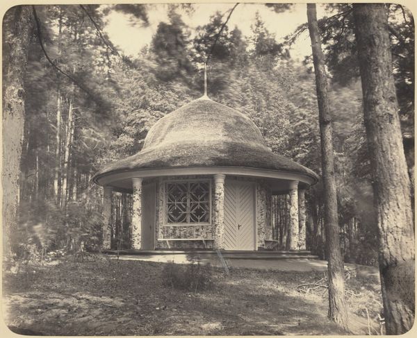 Curator: At first glance, I find a quietness about this photographic print—something contemplative. The tones are muted, lending a timeless feel. Editor: Indeed. What we see here is a work titled "Leerling van Schule Schloss Salem bij een zelfgebouwde blokhut," taken circa 1929. The description translates to "Student of Schule Schloss Salem at a Self-Built Log Cabin". We don’t know who took the picture, however. Curator: That title makes me see the work differently. There's a particular cultural symbol inherent in such youthful activity and industry, something that speaks to broader pedagogical theories. Self-sufficiency, learning through building… Editor: I agree, there's a social component, and Schloss Salem was an interesting and socially aware project. Founded by Kurt Hahn, its development was profoundly affected by the First World War and, later, of course, the rise of National Socialism in the early 1930s. So even at the time, there were clear anxieties about what society should look like. Curator: The very composition has implications, actually, with the figure posed almost as a guardian of his space or standing in defiance of whatever one believes it might face in his location. Is it about ownership and protection or community development? Editor: Precisely! This photography encapsulates a unique moment in German history and reveals that the institution plays a vital role in instilling agency in its students, quite literally—even symbolically giving them a platform. It highlights a fascinating contrast between the return-to-nature movement and broader social and political developments of the time. Curator: Looking closer, I also recognize this work contains very basic components - structure versus landscape, youth versus experience, darkness and light. This contrast evokes an unsettling sense of tension, yet potential. These students seem confident. The hut promises shelter and knowledge, as does their society. Editor: This glimpse into the past encourages a reflection on how education shapes individual capabilities but must equally provide security for a positive community development.