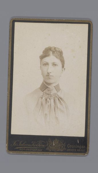 This portrait of an unknown woman was captured by J. Van Crewel Jeune, a photographer from Anvers. She presents herself with a dignified gaze. Her clothing, adorned with intricate lace and subtle jewelry, speaks to a woman of understated elegance and perhaps a hint of melancholy. Consider the oval shape of the photograph, a format reminiscent of ancient cameos and memorial portraits. This framing immediately connects the sitter to a tradition of remembrance and commemoration, echoing the classical notion of preserving a likeness for posterity. The soft, diffused lighting and the sitter's composed expression evoke a sense of introspection. This is reminiscent of the Renaissance portraits, where subjects were often depicted in a state of thoughtful contemplation. Such a representation taps into our collective memory, where the act of portraiture is not merely a recording of appearance but an attempt to capture the inner essence of the individual. The symbolic weight of the portrait persists, resurfacing in our own time as we seek to immortalize ourselves and our loved ones through images.