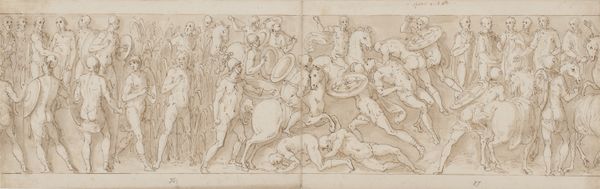 This drawing of 'Cecrops' Daughters Uncover Erichthonius' was made by Anthonie Blocklandt in the late 16th century. The monochromatic sepia ink creates a softly modeled scene. Three nude figures dominate the composition, arranged in a tight triangular formation that draws the eye to the center, where they unveil the infant Erichthonius. Blocklandt uses the female nude to explore classical mythology. However, he is not just illustrating a story but also engaging with the artistic and philosophical concerns of his time. The artist's precise linear style and attention to the anatomical form of the figures reflects a Humanist interest in classical aesthetics. The way Blocklandt uses the composition and the expressive poses of the figures, invites us to consider the nature of knowledge, secrecy, and revelation, themes prevalent in Renaissance thought. The work asks us to consider how the artist uses line and form to investigate intellectual and artistic ideals.