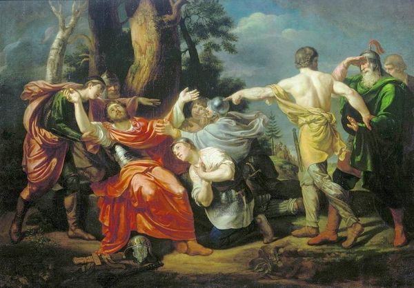 Nicolas Poussin made this oil painting, titled "Et in Arcadia ego," at some point during his career in France. The painting depicts a scene of shepherds encountering a tomb in an idealized landscape. The inscription on the tomb translates to "Even in Arcadia, there am I," with "I" referring to death. Poussin’s painting reflects the cultural and intellectual climate of 17th-century Europe. The rise of humanism and scientific inquiry led to a renewed interest in classical antiquity and a focus on reason and observation. The establishment of institutions like the Académie Royale de Peinture et de Sculpture shaped artistic production and promoted certain aesthetic ideals based on classical models. In this context, Poussin's work engages with philosophical questions about mortality and the human condition. It invites viewers to reflect on the transience of life and the inevitability of death, even in the most idyllic settings. To understand it better, we could delve into the writings of classical philosophers, the patronage networks of the French court, and the theoretical debates within the Académie. Ultimately, the meaning of this art is contingent on the cultural and institutional context in which it was created.
