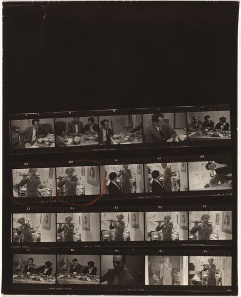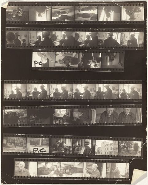Robert Frank made this contact sheet of gelatin silver prints, showing a family, likely sometime in the mid-twentieth century. These strips of images, direct from the negative, speak to the labor of photography. It isn't just about the decisive moment, but the editing process. The careful selection that lies behind any photographic project. Here, Frank lets us see the outtakes, the variations, the raw material from which a final image might be chosen. We see his working method. Even the sprocket holes on the film have a meaning. They are a direct reference to the mechanical process of image making, an index of the camera itself. The final prints from these negatives would have been carefully cropped and toned. Yet Frank invites us to see the bigger picture, asking us to consider not just the image, but the whole system of production and selection that brings photographs into being.