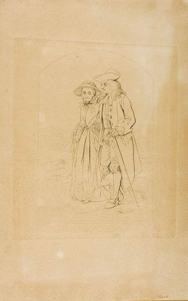 Editor: This ink drawing, "Contemptuous of the Insults," was created by Francisco de Goya between 1816 and 1820. It depicts a taller figure facing three smaller figures, maybe children, with exaggerated features. I’m struck by the seeming power dynamic, a sense of mockery perhaps? What's your interpretation of the social commentary here? Curator: Goya, as an activist, consistently questioned societal structures through his art. Notice how the figures are rendered; the supposed adult possesses a dismissive, almost smug expression. Considering the political turmoil of Spain at the time, specifically the restoration of the monarchy, might Goya be using these caricatures to represent the old guard’s attitude towards a struggling populace? Editor: So, the “insults” could be symbolic of oppression, and the older figure embodies a power structure? But why the exaggerated features, the almost grotesque appearance of the children, or figures? Curator: Precisely. The exaggeration serves as a form of visual critique. Think about Romanticism and its preoccupation with the grotesque as a way to challenge accepted beauty standards and societal norms. Goya utilizes this to depict not just physical ugliness but a moral deficiency. Could we then infer that Goya sees these figures representing ignorance and cruelty, empowered by a failing system? Editor: That’s a fascinating reading. I hadn’t considered the use of Romanticism in this light – as a direct form of social protest. I’m used to it in connection to a lot of nature images. Curator: Exactly! How else could this understanding apply when discussing political movements that are active today? How do contemporary artists use those same methods of visual critique, such as caricature, or challenging beauty standards, as commentary? Editor: That's something I hadn’t considered before, thank you. It really shows how Goya’s activism resonates through his art. Curator: It also demonstrates how art historical analysis provides tools to understand our world now.
