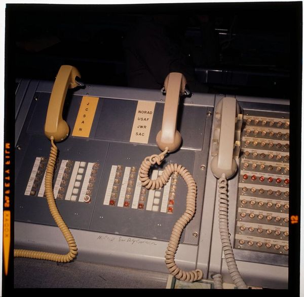 Editor: This is an untitled photograph by Jack Gould, it’s quite small, showing two men in what looks like a control room, surrounded by complex equipment. What strikes me is the implicit power dynamic here. How do you see this image in the broader context of its time? Curator: It's interesting you pick up on that power dynamic. Consider the post-war era, the rise of scientific institutions, and the Cold War. How did the public perceive these scientists and their facilities? Were they figures of authority, operating in spaces largely inaccessible to the everyday citizen? Editor: So, the image could be seen as reflecting both the awe and perhaps the anxieties surrounding scientific advancement at the time? Curator: Precisely. It’s a glimpse into a world of technological progress, but also a world that might have felt increasingly distant and controlled. Editor: I hadn't considered the public perception aspect so directly. Thanks! Curator: My pleasure! It’s all about the socio-political forces that shaped the production and reception of art.