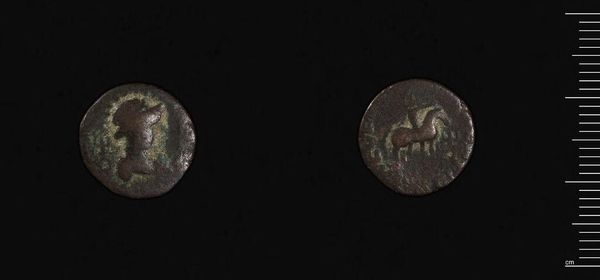 Editor: This is a Drachm of Kamnaskires III of Elymais, a small coin held by the Harvard Art Museums. The images are worn but it is intriguing to think about what it was once used for. What can you tell me about its role in society? Curator: The creation and circulation of coinage was a political act. Who is represented, what symbols are used, and where it was distributed speak volumes about a ruler's power and aspirations. How does this coin reflect Kamnaskires III's legitimacy? Editor: I suppose having his portrait on the coin would solidify his image as ruler, though it also looks like a figure is being worshiped on the back. Curator: Exactly. This coin provides insights into the socio-political and religious landscape of Elymais, revealing how Kamnaskires III sought to legitimize his rule through imagery. Editor: It's fascinating how something so small can tell such a complex story. Curator: Indeed. The politics of imagery extend even to the smallest of objects.
