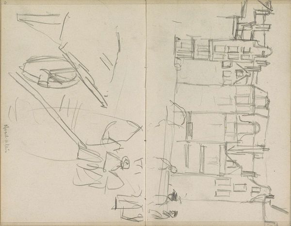 Editor: Here we have "Grote zaal van de Tivoli brouwerij te Berlijn", or "Great hall of the Tivoli brewery in Berlin", a pencil drawing done between 1866 and 1868 by Isaac Gosschalk. I'm really drawn to the lightness of it – it feels almost ephemeral. What's your take on this sketch? Curator: Ephemeral is a lovely word for it. It reminds me of capturing a fleeting thought. This isn't about precise documentation; it's about feeling the space. Look at how Gosschalk uses these delicate lines - almost tentative, yet they give such a sense of depth to this grand hall. It's like he’s whispering the architecture into existence. Does it feel like Romanticism to you? Editor: Absolutely! I see Romanticism in the way it captures the atmosphere more than the precise details of the building. But how much can we really infer from what looks like a preliminary sketch? Curator: Ah, that’s the beauty of sketches, isn’t it? They're often more revealing than finished works. It is tempting to fill in those gaps ourselves. I think this tells us a lot about what resonated with Gosschalk. He wasn't necessarily trying to render a perfect image. He was trying to capture the grandeur, the light, and maybe even a bit of the energy of the Tivoli brewery's great hall. It's about suggestion, not statement. It lets our imagination dance with his. Editor: That’s such a great point. Seeing it as a starting point for a bigger idea makes me appreciate it a lot more. Thanks! Curator: My pleasure! It reminds me that even fragments can contain universes.