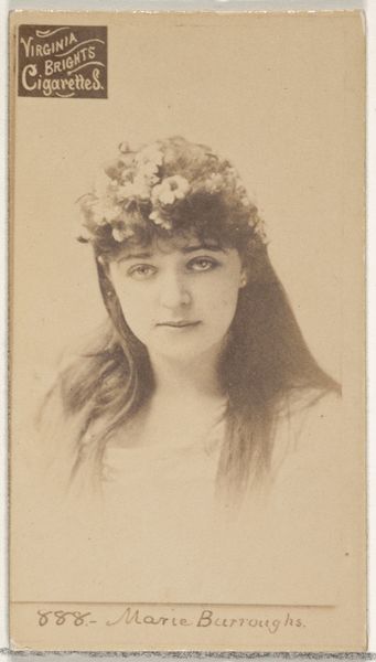 This is a photograph of Lila Blow, part of the Actors and Actresses series for Virginia Brights Cigarettes. The sepia tone lends the piece an antique quality, emphasizing its historical context. The image is dominated by soft lines and diffused light, creating a gentle, almost dreamlike effect. The subject's gaze is directed downwards, adding to the sense of introspection and serenity. The composition is simple yet effective. The close-up of Lila Blow allows for an intimate connection with the viewer. The delicate lace and flowing hair add texture, contrasting with the smooth skin. The commercial function is to advertise cigarettes; the use of a celebrity image plays with the idea of aspiration and desire. The photograph is also a sign of changing cultural codes of celebrity and consumption. These elements, while seemingly straightforward, invite us to consider the complex interplay between art, commerce, and representation.