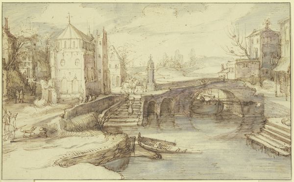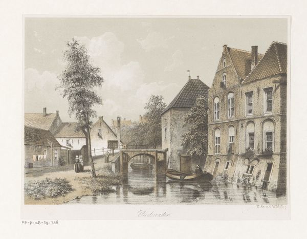 Curator: So, we’re standing in front of Isaac Weissenbruch's "View of a Canal," likely created somewhere between 1847 and 1912. It’s currently housed right here at the Rijksmuseum. It's an etching. Editor: It's…peaceful. There's such detail in such a simple medium. The soft grey of the sky gives me a deep sense of quietude. But looking closer… Curator: You’re right! It seems initially calm, but observe the activities. Children playing by the canal, people on the bridge, even dogs are enjoying the space. It shows community. Who had access and how would you describe the social dynamic from just the drawing alone? Editor: It hints at class dynamics. The solid architecture, seemingly well maintained. Suggests relative wealth or at least stability. But those playing near the water, likely the lower classes—it all screams hierarchies. Is this idealized, or a faithful representation of urban Dutch life at that time? Curator: Good question. I lean towards idealization. Weissenbruch was influenced by the Hague School and Dutch Golden Age artists, known to imbue paintings of reality with soft focus and atmosphere. But, I am interested to think if this is a window to seeing a moment, which is itself inherently filtered through its maker. Does it change how we interpret art and history? Editor: Absolutely! His choices – to include or exclude specific elements, the level of detail he applies to various social elements – speaks volumes. We have to analyze art making with awareness, while giving a nod to those rendered with it and how they exist. And that, friends, should inspire more curiosity. Curator: Indeed. A reminder that what’s present in a work of art is just as important as what is missing and can tell so much! Thank you.