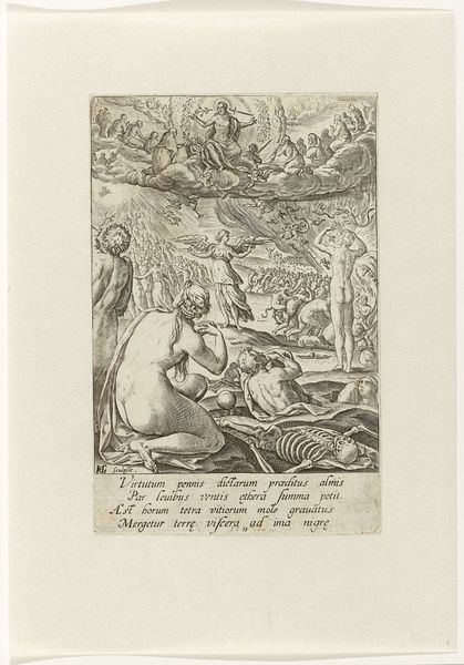 Editor: This is "Heilige Christoffel" - or Saint Christopher - an engraving made sometime between 1520 and 1530 by Telman von Wesel. The density of lines really pulls me in. It almost feels… chaotic? What stands out to you in this piece? Curator: Chaos, yes! But a purposeful chaos, like nature itself. It’s a microcosm of the world as they knew it. Consider: here’s Christopher, a giant, wading through dangerous waters – meticulously engraved, you can practically *feel* the pull of the current, right? And the Christ child, a tiny beacon of serenity on his shoulder. See how the artist contrasts Christopher's muscular effort with the Child's placid nature, his future? That duality really grabs me; wouldn't you agree? Editor: Absolutely, it’s there in the landscape, too. Violent water and this quaint house on the far bank... why juxtapose such contrasting images? Curator: Ah, now we’re digging! This little vignette could symbolize a transition. A humble village, safe, while the natural world offers its own perilous beauty. Think about it; Christopher’s story is one of conversion – of moving from brute strength to humble service. Perhaps Wesel is suggesting that the Church can coexist harmoniously in this state of existence? Food for thought! How did this influence your impression of the piece? Editor: Definitely sheds new light! I’m finding myself less focused on “chaos” now. Curator: Good! Let art crack you open! Editor: I came in thinking ‘busy’ and now I see real intention.