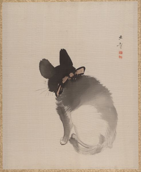 Editor: This drawing, entitled "Puppy", is attributed to the Studio of Tawaraya Sōtatsu and was created sometime between 1600 and 1633 using ink on paper. The monochrome rendering of the puppy against the pale ground is so simple, yet endearing. What can you tell me about it? Curator: I see a fascinating exploration of materials and their implications. Consider the ink itself, its source, its processing. What labor was involved in its creation? The paper, too—where was it sourced, and who manufactured it? These choices were deliberate and infuse the final product with a complex history of production. Editor: That's interesting. I was really just thinking about the cute puppy, but the materiality makes me think differently. Curator: Exactly. Furthermore, let’s examine the format—a hanging scroll, designed for display and contemplation. How does the very act of presentation influence our understanding and consumption of the image? This isn't just about the artist’s hand, but the whole system of art making, display, and, ultimately, the role of "Puppy" as commodity or cultural object. Think of the Yamato-e tradition: What were the conventions and from where did these conventions arise? Editor: So you're suggesting that analyzing the physical aspects, such as the ink and paper, offers insights into the social and economic context in which it was made? Curator: Precisely! We must ask ourselves: what socioeconomic factors influenced the use of these particular materials and the choices of techniques, and ultimately, how are the boundaries between fine art and craft challenged by exploring these aspects? Editor: I never really thought of it that way before. I was always focused on just the artist’s intention. Curator: That's a common approach, but looking at the materiality reveals the larger, often invisible, forces that shape artistic production. Editor: Well, thanks, I definitely have a new perspective now. Curator: Indeed, materiality invites us to reassess how and why we value art.