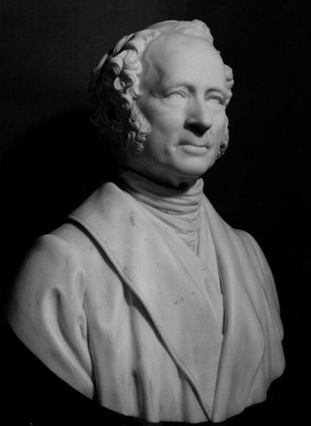 Curator: Take a moment to gaze upon this marble sculpture. It’s a portrait bust created in 1793 by Johannes Wiedewelt. The subject is Major-General Johan Frederik Classen. Editor: He looks…determined, or perhaps stubbornly confident? There’s a stiffness in his posture, an unwillingness to yield in his expression. It's interesting to me how sculptors in that era portrayed men of power. Curator: Absolutely, and much of that comes from the symbolic language of Neoclassicism. Notice how Wiedewelt uses classical realism, striving for idealised representation to convey authority and stature. Even his garments carry significance. The draped fabric mimics a Roman toga, alluding to republican virtue and military leadership, though its style has been brought to life with the contemporary detailing in the cravat and trim of his suit. It almost makes the statement that nobility is a classic ideal modernized for that time. Editor: You can tell the neoclassical style was definitely an inspiration at the time, it's interesting how even back then artists borrowed, iterated on concepts from previous cultures to amplify what they want to express with their art. What do you make of the face? Curator: The face, with its resolute gaze and slightly pursed lips, speaks of control. Wiedewelt doesn't shy away from portraying Classen's prominent features but presents them with a sort of noble restraint. And of course the choice of marble as a medium only serves to enhance that timeless quality that they sought to give these subjects of power back then. It adds to the illusion of permanence and grandeur. What do you think it communicates to the audience, and why did people get statues like this in their time? Editor: In times of huge, monumental change, I wonder if people find a sense of solace in images that suggest control, certainty, and a direct link to historical grandeur, or if it was to memorialize this historical figure so people would think of them in a powerful and admirable light? Power through image and memory, and power held with certain stoicism is what the artwork seems to communicate to me the most. Curator: Yes, it really is a powerful example of the ways in which art embodies its own historical period while subtly guiding the way we think and feel. Editor: It's like holding a fragment of the past, still resonating today with these old statements of purpose, ambition, and memory.