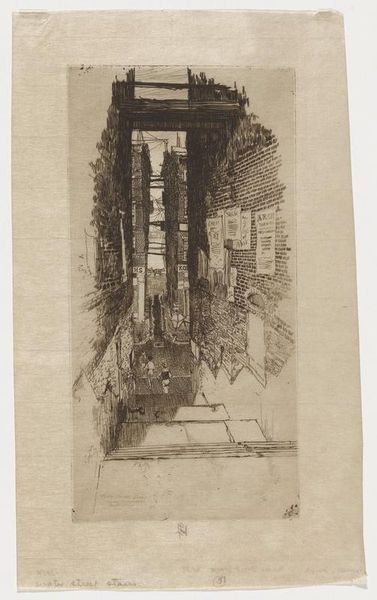 Joseph Pennell created this etching of a construction site, probably in the early 20th century. The sepia tones and sketchy lines give the feeling of looking at something in progress. The artist is almost reaching for the forms rather than defining them. There's a beautiful tension between the chaotic scaffolding in the foreground, and the architecture rising up behind. Pennell's use of line is so expressive, you can almost feel the grit and the raw energy of the site. Look at the lower part of the image, where the lines are thickest, and suggest the weight and stress of the building works. The overall effect reminds me of Piranesi, who also used etching to portray the grandeur and complexity of architecture. But where Piranesi is meticulous and precise, Pennell is loose and intuitive. He revels in the mess and the ambiguity, and suggests that art can be as much about the process of building as the finished product.