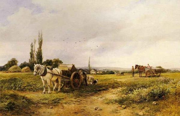 Aurelio Tiratelli painted this Roman countryside scene with oils on canvas sometime in the late nineteenth century. The appeal of this work hinges on the material qualities of paint: its capacity to evoke atmospheric perspective, and the textures of both landscape and the figures traveling through it. The artist deploys his medium to create an image of rural life, with the shepherd family at its center. The dust kicked up by the flock, and the distant hills are deftly handled, demonstrating Tiratelli's skill in observing and recreating nature. But the work's significance goes beyond pictorial accuracy. By portraying these figures as noble participants in the landscape, Tiratelli elevates their humble labor, linking them to a pastoral tradition that romanticizes the countryside as a space of purity and simplicity, far removed from the stresses of modern urban life. This painting reminds us that even seemingly straightforward images are carefully constructed, revealing the artist's material skill, along with the cultural values shaping his vision.