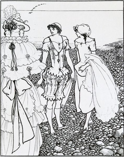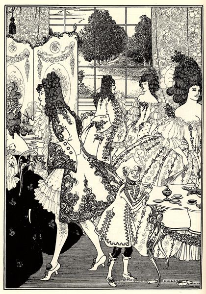 Aubrey Beardsley created this drawing, "The Toilet of Helen," in England during the 1890s. It depicts a scene of elaborate artifice and decadent beauty. Beardsley was associated with the Aesthetic movement, which emphasized art for art's sake. This idea challenged the Victorian era’s moralizing and the didacticism in art. Beardsley’s work also reflects the influence of Japanese prints, which were gaining popularity in Europe at the time. The flat planes and intricate patterns add to the drawing's overall visual impact. "The Toilet of Helen" portrays a world of exaggerated fashion and social ritual, populated by figures who seem more like caricatures than realistic people. The image invites us to consider the artist's attitude toward the elite culture of his time: is he celebrating it, critiquing it, or both? To understand Beardsley's drawing more fully, we can turn to periodicals, exhibition reviews, and biographical information, offering insights into the artistic and cultural contexts in which the work was made.