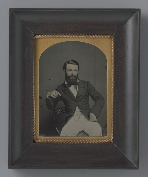 Curator: Just look at this man, so clearly captured in light. What a gift from 1845! This "Untitled (Portrait of Seated Man)" daguerreotype at the Art Institute is haunting, really. It’s an incredible glimpse into the past, even if the artist remains anonymous. Editor: My first impression? Somber. There's a stillness that speaks volumes beyond just the technology of the time demanding it. He looks... contained. Curator: Contained is a brilliant word for it. Think about what it meant to sit for one of these things. He’d be pinned there. It’s so far removed from our endless selfies! But he has such poise. The folds of his coat, his hands so carefully placed… he’s presenting himself, absolutely. Editor: Absolutely. Presentation in early photography was inherently a political act. Consider the accessibility – or inaccessibility – of portraiture to various classes, genders, races in the 19th century. Who was afforded the dignity of representation? And what narratives did these images perpetuate? Curator: I always wonder what his story was. You look at that face, those clothes; he’s clearly a man of means. And I can’t help but imbue it with romance, with a touch of what do you call it… the myth of the individual. The great romantic hero quietly persevering, bottled emotion... even in a photograph. Editor: It's that very 'myth of the individual' that interests me. Daguerreotypes, though seemingly objective, are steeped in power dynamics. His social class granted him access to this technology and, by extension, a space in the visual archive, a privilege denied to many. His contained pose, you see, it perhaps represents an adherence to societal expectations, performative respectability in a time of enormous social change. Curator: Oh, I completely grant you all of that! But there is also the human element. Photography gave us realism in art in such a revolutionary way and to just see it frozen in time…it touches me deeply. Editor: The revolution continues, even now! Looking at art through a more questioning gaze. It allows us to remember all that has shifted but how much also has yet to. Curator: Beautiful. Thank you. I don’t think I will look at this photo quite the same way again. Editor: Hopefully for the better, opening many more windows than shutting.