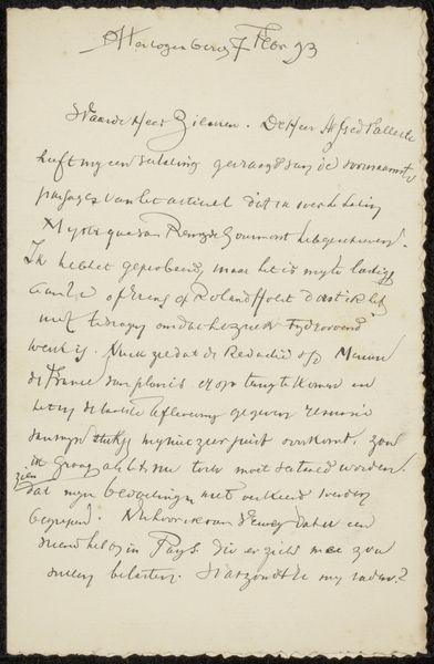 This is a letter penned by Max Liebermann in Berlin in 1893. Letters, like this one, offer art historians a window into the social and cultural context of art production. Here, Liebermann corresponds with Jan Veth, likely concerning the arrangement of an exhibition. The informal tone suggests a close relationship between the two artists, perhaps forged within the institutions of the art world. Liebermann mentions the possibility of acquiring works by "good Dutch masters" from private collections or public galleries and even alludes to paintings by Israëls from Vothreitt or de Haan in Amsterdam, highlighting the network of collectors and dealers that sustained artistic careers. Documents like this letter are invaluable resources for understanding the social dynamics and institutional frameworks that shaped the art world at the turn of the century.
