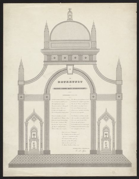 Lorenz Frølich created this cover for Adam Oehlenschläger's poem "The Two Church Towers". The architecture evokes the Romanesque style, its arches and sturdy columns resonating with early Christian symbolism. Above, a stork, often a symbol of birth and new beginnings, perches, connecting to ancient fertility rites. This motif appears across cultures, from Egyptian hieroglyphs to medieval tapestries, always linked with creation and renewal. The stork's nest, a vessel of life, holds deep psychological weight, symbolizing not just physical birth but also the genesis of ideas and spiritual awakening. Notice how the artist frames the church interior with stylized plants. These are not mere decoration, but a persistent echo of nature’s cyclical rhythms. This motif has undergone countless transformations, yet its primal association with growth and decay remains, engaging our subconscious recognition of life’s impermanence and continuity. The persistence of these symbols reveals how deeply rooted our cultural memories are.