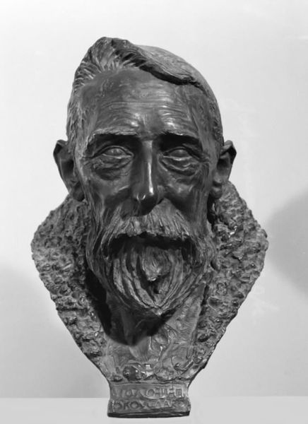 Curator: Here we have Stephen Tomlin's bronze bust of Lytton Strachey, a prominent figure in the Bloomsbury Group. Editor: It’s immediately striking – that heavy, textured surface conveys such a sense of intellectual weight and quiet intensity. Curator: Tomlin, who knew Strachey, captures the essence of this influential biographer, who challenged Victorian social norms through his writings and persona. The sculpture, acquired by the Tate, reflects shifting cultural values. Editor: I'm fascinated by the materiality – the visible marks of the artist's hand in the clay before casting suggest a direct, almost urgent process. I wonder about the foundry, the labor involved in bringing this image to life. Curator: Certainly, the Bloomsbury circle, with its intricate web of relationships and aesthetic ideals, shaped both the subject and the sculptor, influencing their public reception. Editor: It's more than just a likeness. This bronze carries the weight of Strachey’s radical thinking and Tomlin's own artistic hand. Food for thought. Curator: Indeed, and a testament to the power of portraiture to encapsulate an era.
