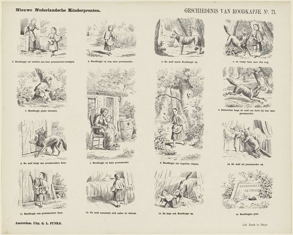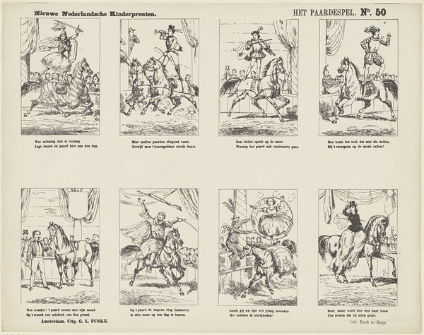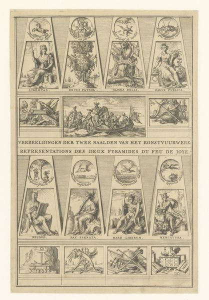 Editor: Here we have "Soldaten" by George Lodewijk Funke, sometime between 1865 and 1875, done as an engraving. It depicts various Dutch soldiers, almost like a fashion plate. What really strikes me is how detailed the uniforms are, almost fetishistically so. How do you interpret this work, focusing on the method and social elements involved? Curator: This isn't simply about the surface depiction, but the industrialization of image-making and its intersection with militarism. Engravings, as a reproductive technology, allowed for the mass dissemination of images like these. It points to the emergence of a visual culture centered on national identity and, crucially, the military. The act of creating multiple copies shifts attention to the labour and material circumstances that makes mass visual culture possible. Editor: So, it's less about artistic expression and more about the process of creating a kind of national visual identity through mass production? Curator: Precisely. Consider the material implications. Copper plates, ink, paper, the workshop... These aren't just aesthetic choices, but resources extracted and transformed to promote a specific ideological viewpoint. How does that impact your perception of the images themselves? Editor: It definitely makes me see the images differently. The care in showing all these soldiers loses its charm and suggests a mass standardization. Were these widely circulated? Did this contribute to some social trend? Curator: Yes, these kinds of prints were affordable and circulated widely. Mass manufacturing served a purpose to make soldiering, and Dutch power visible. By making images, an intangible idea becomes palpable through commodity circulation and material consumption. The medium is indeed the message. Editor: I see now. Looking at the process and materials adds so much to what the image tells us about its context. Curator: Exactly. Thinking materially encourages us to view art as part of wider economic and cultural networks. This approach is something to hold on to in viewing artworks more broadly.