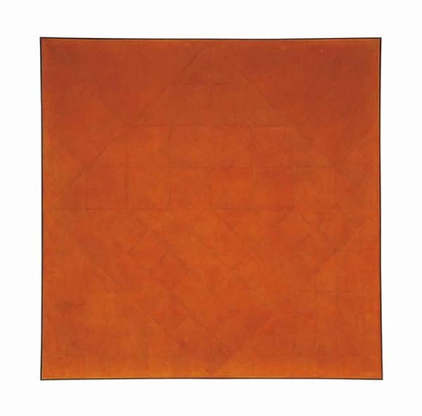 Editor: This is Gotthard Graubner’s "Le vent du soleil," created in 1996. It appears to be a matter painting utilizing oil paint. The color is so striking; it’s overwhelmingly orange, but not uniformly so. What jumps out to you when you consider the piece? Curator: I’m immediately drawn to the chromatic intensity. The surface isn’t merely painted; it's constructed, almost sculptural, with layers of pigment creating a tangible depth. Do you see how the composition avoids any representational element, pushing towards pure sensation? Editor: I do. It's hard to find a focal point. The whole thing pulses with a kind of vibrant energy, which I imagine is from the title – ‘The Wind of the Sun.’ Is there a theoretical framework we can use to understand what he is doing? Curator: Considering formalism, we look at how the artist orchestrates colour and texture. The painting operates within the Colour Field tradition, emphasizing the properties of the medium itself. The variations in hue, the almost cloud-like formations within the orange, they work to destabilize a purely flat reading of the picture plane, don’t you agree? Editor: Yes, the lack of a clear form makes me reconsider what’s important, like the subtle changes in tone. It seems that’s where the core message might reside. The artwork definitely demands close and careful attention, something I initially overlooked. Curator: Precisely. Through disciplined attention to formal elements, we can gain deeper insight and elevate our viewing experience, from mere passive observation to active critical appreciation.
