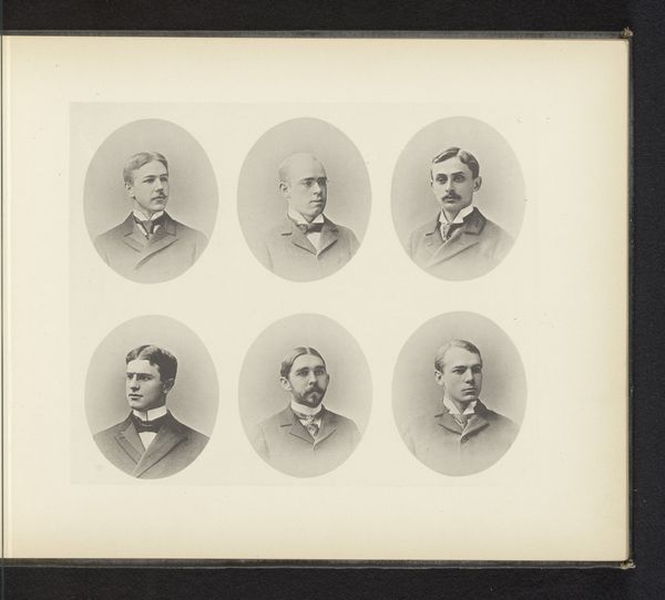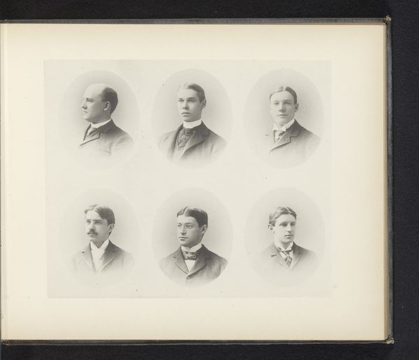 This page of portraits represents former heads of Glasgow University, and is made from photographs carefully arranged and adhered onto paper. Photography in this period involved a complex layering of chemical processes, often outsourced to skilled technicians. The portraits embody the qualities of the photographic process: tonal range, crisp resolution, and the sitter’s pose and dress. On the right, the portraits are clear, sharp, and carefully positioned. By contrast, the portraits on the left page have faded or disappeared altogether, revealing the inherent instability of early photographic materials. The meticulous arrangement and craftsmanship speak to the era's burgeoning industrial processes. Consider the social context: these were men of power and influence, and the images represent the university's identity and legacy, reinforcing its position within the broader societal structure. Ultimately, this page reminds us that even seemingly straightforward images are shaped by materials, labor, and the social structures that support them.