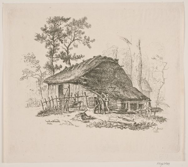 Jan van Ravenswaay created this drawing of a dilapidated farmhouse. The broken structure of the barn carries a potent symbolism. In classical art, ruins often evoke a sense of melancholy, reflecting on the transience of human endeavors. Yet, the thatched roof, a common feature in rural scenes, also suggests resilience. Think of similar motifs throughout history – the humble cottages in Bruegel's paintings, the ruins in Piranesi's etchings. Each artist taps into our collective memory, stirring feelings of nostalgia and perhaps a deeper awareness of time's relentless march. The image’s emotional power lies in this tension between decay and endurance, engaging us on a deeply personal level. We see in it our own fleeting existence, the cycle of growth and decline, and the enduring spirit that allows us to find beauty even in the face of ruin. It's a reminder that images live on, evolving, taking new forms, echoing through time.