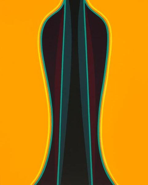 Editor: So this is Erte's "Spring Opening", an ink drawing in the Art Deco style. What I find striking is the figure’s dark silhouette against the explosion of spring colors; it gives me a sense of dramatic unveiling, like a grand theatre curtain. How do you interpret this work? Curator: Indeed, the visual impact relies heavily on the symbolism of revelation. Consider the curtain itself: across cultures, curtains signify secrecy, the hidden, the potential. But here, they are flung open, revealing the vibrancy beneath. Doesn't this conjure images of the Great Mother goddess myths and seasonal rebirth rituals, of vegetation blooming forth after a long dormancy? Editor: I can see that, yes! I hadn’t considered the connection to ancient rebirth rituals. Are you saying that Erte is referencing those myths directly? Curator: Perhaps not consciously, but the archetype resonates. The gesture of opening, of offering what was concealed, is a potent image. The figure itself, masked in darkness, acts as a cipher, a stand-in for a primal force bringing forth renewal. The elaborate, stylized forms swirling within the “curtain” are classic Art Deco, yet they also mimic the chaotic energy of burgeoning life. What feelings do those colors evoke? Editor: Well, to me, the purples and oranges with pops of yellow give it an almost celebratory feel. A joyful explosion of life. Curator: Exactly! The choice of colors amplifies this reading; it reinforces the psychological impact and further links it to themes of joy, abundance, and renewed vitality. Spring, after all, is not just a season; it’s a potent symbol that recurs throughout history and across many cultures. Editor: It’s fascinating how Erte used such a seemingly simple image to tap into such deeply rooted concepts. Curator: Precisely. By using universally understood visual symbols like a curtain opening and colors associated with rebirth, Erte creates an image that speaks to something primal within us. A shared cultural memory, if you will.