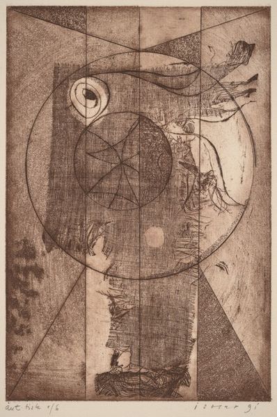 Hugo Gellert's lithograph presents us with a stark, monochromatic scene of potent symbolism. The composition is dominated by a sphere, meticulously shaded to give it volume and weight, floating above what appears to be smoke or clouds. Two figures cling precariously to the sphere, one resembling a worker, the other a more athletic and heroic figure, together wielding an object that suggests destruction. The artist’s use of lithography lends a textured quality to the image, highlighting the contrast between light and shadow. The formal structure of the work—the sphere, the figures, the smoke—can be read through a semiotic lens. The sphere, with its ambiguous and heavy form, could symbolize the world or society, while the figures, poised to ignite, represent forces of change or revolution. The artist challenges the viewer to consider the relationship between power and destruction, progress and upheaval, urging us to reflect on the underlying tensions within social structures. Ultimately, Gellert's lithograph serves as a visual manifesto, prompting ongoing interpretation about the nature of change and the inherent instability of power.
