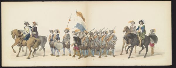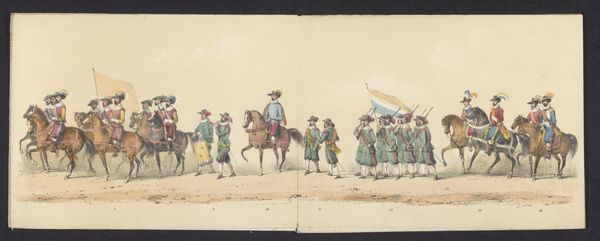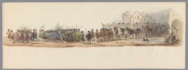 Victor Adam created this watercolor in 1836, commemorating the second centenary of Utrecht University. Adam used watercolor, a medium known for its translucency and fluidity, to depict the historical procession. The thin washes of color create a sense of light and airiness, perfectly capturing the spectacle of the event. You can almost feel the bustling energy of the crowd and the crispness of the air. The artist’s technique, with its delicate brushstrokes, highlights the grandeur of the procession while also reminding us of the labor and skill involved in its creation. Note the intricate details of the costumes and banners. The production of these elements would have involved tailors, seamstresses, and flag makers. The act of representing the parade through watercolor elevates this event beyond a simple historical record, inviting us to consider the connections between labor, social class, and artistic representation. This piece bridges the gap between the fine arts and the craftsmanship inherent in creating public spectacle.