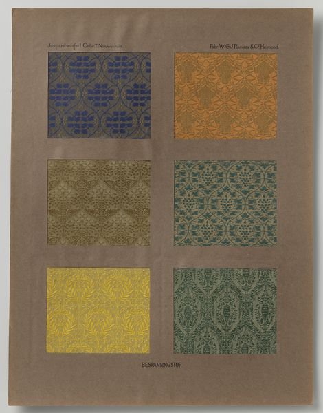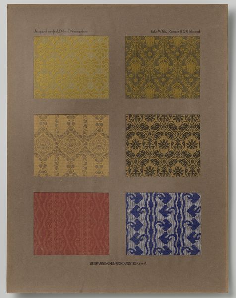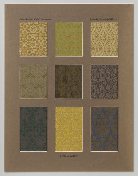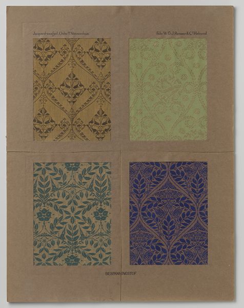 Theo Nieuwenhuis created this curtain fabric design, presented in a passe-partout, sometime in the early 20th century. What strikes me is the way the designs hint at process, at the hand of the maker. There's a real back-and-forth, a dance between intention and accident that feels very alive. Look at the top left swatch, with the repeated floral motif. The weave is so dense, yet the shapes retain a certain organic quality. It feels as if the artist let the materials guide the pattern, embracing the irregularities inherent in the process. The subtle color variations, the way the light catches on the surface, give it a tactile presence. You can almost feel the texture of the fabric, the warp and weft of the threads. These designs remind me a little of William Morris, though Nieuwenhuis has his own sensibility. What both artists share is an understanding that art is an ongoing conversation, a dialogue between the artist, the materials, and the world around them. And like all good conversations, it's full of surprises and unexpected turns.