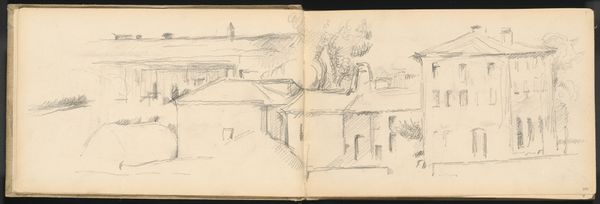 Editor: So this drawing, "Plattelandswoning naast een boom," or "Rural House Next to a Tree," by Maria Vos, was created sometime between 1834 and 1906. It’s pencil and pen on paper and it gives me a kind of wistful feeling. There's something very intimate about the sketchiness, like peeking into her personal sketchbook. What stands out to you in this piece? Curator: It’s interesting you say “intimate,” because I see that too. Consider the symbols she uses, the house tucked away and overgrown near a large tree: It's archetypal. Think of how many fairy tales begin with a lonely cottage in the woods. What does that evoke? What meaning is subtly, yet strongly conveyed with those fundamental structures that appear consistently in world-spanning stories and myths? Editor: I guess it feels kind of protected or maybe isolated, depending on how you look at it. So, are you saying Vos might be consciously drawing on these familiar narratives, adding extra depth? Curator: Exactly. It also taps into cultural memory, those images and stories passed down through generations that shape how we see the world. That specific window might seem like an inconsequential part of the overall scene, but consider its symbolism! As a device in paintings, film, photography, windows are traditionally viewed as framing devices and markers of "inward and outward gazes." Editor: Wow, I hadn't really thought of it that way, that these commonplace parts could carry so much collective meaning. It definitely makes me see the drawing in a whole new light. Thanks! Curator: My pleasure! I was reminded of how symbols, carefully chosen and artfully rendered, speak to our deepest understanding of ourselves and our shared history, offering a comforting, yet intriguing recognition.