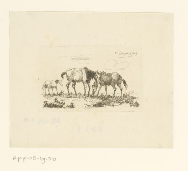 This is "Brief aan Philip Zilcken" by Alphonse Stengelin, made with ink on paper. It’s a drawing, or maybe even an etching, of a sheep – simple lines describe the animal, all scratchy and a little unsure, which gives it a lovely, humble quality. You can see the process so clearly, the way the artist built up the form with these hesitant marks. I love the economy of the line, how much is suggested with so little. Look at the sheep's wool – it's just a scribble, really, but it totally conveys the texture. And the way the legs are kind of spindly and awkward, it’s very endearing. Then below the drawing is the handwritten letter. It reminds me a bit of some of Philip Guston's later, more cartoonish works, in the sense of embracing a kind of raw, almost childlike way of drawing. It's a reminder that art doesn't always have to be polished or perfect; it can be about capturing a feeling, a moment, with whatever means you have at your disposal.