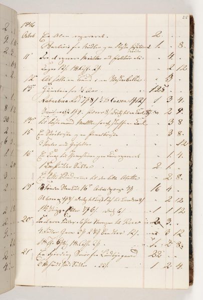This is a page from Martinus Rørbye’s account book for the year 1846. Its materials are simple: paper, ink, and thread, binding it together. These are, of course, the stuff of everyday life, but here, meticulously inscribed, they take on a special aura. Consider the labor involved in this type of record-keeping. Every entry is handwritten, each number carefully aligned. The aesthetic isn’t exactly beautiful, but there is a definite order and precision to it. Notice the ruled lines, the consistent script. Think about the social context. Rørbye was an artist, but also a man of affairs, tracking his income and expenses, maybe even hoping to turn a profit. This reflects the increasing monetization of art in the 19th century. This humble ledger reminds us that all art, no matter how elevated, exists within systems of labor, value, and exchange. It prompts us to ask: what is the relationship between art and everyday life, and how do we assign worth to creative work?