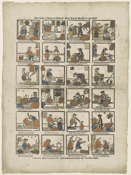 W. van Bergen created this print, sometime in the 18th century, as a form of popular entertainment, depicting scenes from the life of a kitchen maid named Saartje Jansz. This seemingly simple artwork offers a window into the social hierarchies of the Dutch Republic. We see Saartje engaged in various domestic tasks. But the title, "See in this print the cheerfulness of Saartje Jansz, the kitchen maid," prompts us to consider the image's intent. Is it to celebrate the dignity of labor or to reinforce existing social roles through a somewhat ironic lens? The print was produced in Breda. Records from the city archives and guild registers might reveal the identities and social standing of both the artist and the depicted maid. Did prints like these challenge or uphold the social order? Further research may reveal if such popular imagery served to reinforce or perhaps subtly undermine the status quo.