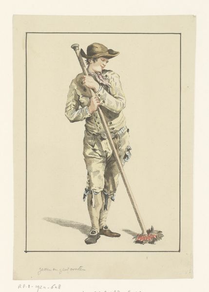 Curator: Here we have William O. Fletcher's "Soldier in Khaki Coin Bank," created around 1938. It’s a watercolor and drawing piece, quite simple really. Editor: My initial thought? Mellifluous earth tones meet…mildly menacing automatons. The shiny finish, combined with the static poses, give them an oddly synthetic appearance, even as the watercolor medium betrays a certain softness. Curator: It is intriguing, isn't it? I see this work within the context of pre-war America, just recovering from the Depression, and the increasing militarization in Europe looming overhead. This piece could speak to that collective consciousness—children saving for an uncertain future potentially involving war. Editor: That makes sense historically, especially contextualizing it to when saving was really stressed because money was a little tighter and a savings during war can impact how the war ends as well as when children are able to buy and save and invest, giving money early. But formally, there's this fascinating tension. Fletcher captures a sense of stoicism in these figures, but the slight asymmetry, particularly in the soldier on the left's posture, almost undercuts that rigidity. There's a quiet humanity attempting to peek through. Curator: And consider that it’s not just “any soldier,” it is meant to evoke a coin bank. This connects everyday consumption with the glorification of military service. Think of the messages embedded: support for the troops and normalization, even from childhood, of contributing to that effort financially. The politics of childhood socialization! Editor: Interesting that you say childhood socialization! This brings an image to mind that makes me picture those classic tin toy soldiers, almost mechanical and infinitely reproducible. This evokes a sort of "boyhood." Here, though, the watercolor suggests fragility, making the khaki uniforms seem like costumes donned by kids rather than true armor or true protection for their childhoods or their own "bank." Curator: Exactly. This combination exposes a contradiction at the heart of national identity in the late 1930s. These children grow up fast as new global events change quickly, or perhaps they won't ever grow up. There is a bittersweet premonition hidden behind the genre-painting. Editor: Ultimately, seeing this, one is reminded that technique always lends itself to social, cultural, and political histories because art becomes history whether intentional or by pure "happenstance". Curator: I couldn't have said that better, and this subtle picture really allows for this broader conversation about cultural moments captured with simplicity.