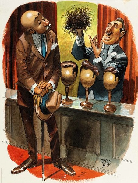 Editor: This is Jack Davis' "Letter Carrier," a pen drawing that appears to be from a personal sketchbook. I find the cartoonish exaggeration and almost frantic energy really captivating. What social commentary, if any, do you think is embedded in this playful piece? Curator: Well, it is interesting to see a caricatured representation of a service role like the letter carrier. Davis has certainly taken cues from traditions of political cartoons and advertising art. How does it affect your reading to think about what societal values were circulating that allowed a mainstream humor to target such a working-class role? Editor: That's a great point. The humor definitely punches *down*. So, this is from a sketchbook – what do we know about Davis, and what cultural functions did sketchbooks have? Were they primarily for personal use, or did they circulate? Curator: Jack Davis was known for his illustrations in *Mad* magazine. We have to remember the sociopolitical function of periodicals like *Mad* – spaces for counter-narratives, social commentary, even resistance to authority, however gently done. Davis worked at the intersection of commerce and critique, and even though we see it in a personal sketchbook, it reflects how visual language was used to engage with social issues in broader popular culture. Editor: It's like he's playing with this public role in his own private sphere. Are we meant to sympathize with the overworked carrier or laugh at the caricature of him? It is difficult to untangle the complex layering of public expectation versus the individual identity here. Curator: Precisely. That tension speaks to the inherent duality of art’s function as both personal expression and cultural artifact. Editor: I’ll never look at a simple drawing the same way again! Thanks!