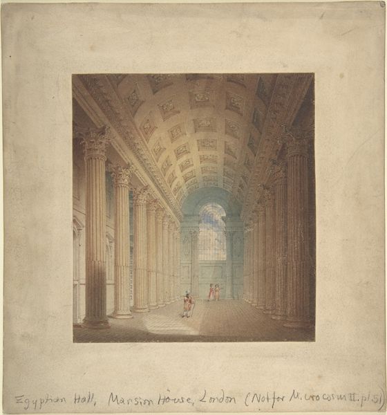 Editor: So, here we have Johann Vögelin’s “View into a Gothic Church, with Baroque additions in the foreground, with staffage figures in 17th-century costume,” from 1778. It's a drawing in ink on paper. I’m struck by the juxtaposition of architectural styles and how that impacts the overall atmosphere, which I find slightly unsettling. What do you see in this piece? Curator: The layering of Gothic and Baroque speaks volumes. Gothic architecture, with its pointed arches and soaring heights, often symbolizes spiritual aspiration. But, observe how the Baroque additions – more grounded and ornate – seem to weigh down the Gothic, almost trapping its upward movement. Notice also how the people, dressed in seventeenth-century clothing, look completely at home within the Baroque, ignoring the ancient architecture surrounding them. What emotional response does this layering of time evoke? Editor: I guess it's like history isn't linear. It feels like different eras are co-existing, maybe even competing. It’s confusing in a way that reflects life's many complexities. Curator: Exactly! The visual disjunction creates tension, reflecting a societal struggle between the old and the new, faith and reason. Vögelin places his figures squarely in this tension. Consider how the costumes serve to locate them not in the transcendent Gothic past but in a tangible, almost theatrical, present. What’s the impact of costuming in shaping a modern person's perception of a centuries-old space? Editor: That's interesting... the clothes kind of act like anchors, pulling us away from the vastness of the cathedral and grounding us in a specific time. It makes it seem less timeless and more… constructed. Curator: Precisely. The symbolic dialogue between architectural styles, temporal signifiers, and spatial orientation reveals how historical narratives are constantly being renegotiated and re-experienced, even within a single image. Editor: Wow, I’ll definitely look at architectural drawings differently now! I was initially drawn to the vastness of the architecture but hadn’t thought about the layers of cultural meaning embedded within. Curator: It’s fascinating how something that seems initially like just a view can unpack so much about cultural memory, don't you think?
